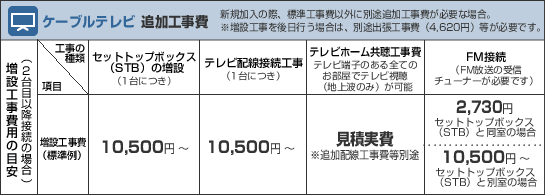 今回のキャンペーン価格でKブロードインターネットに加入した後、KCNデジタルTVを追加で加入した場合、加入契約金26,250円と宅内標準工事費15,750円〜の合計42,000円〜が初期費用として必要となります。 |